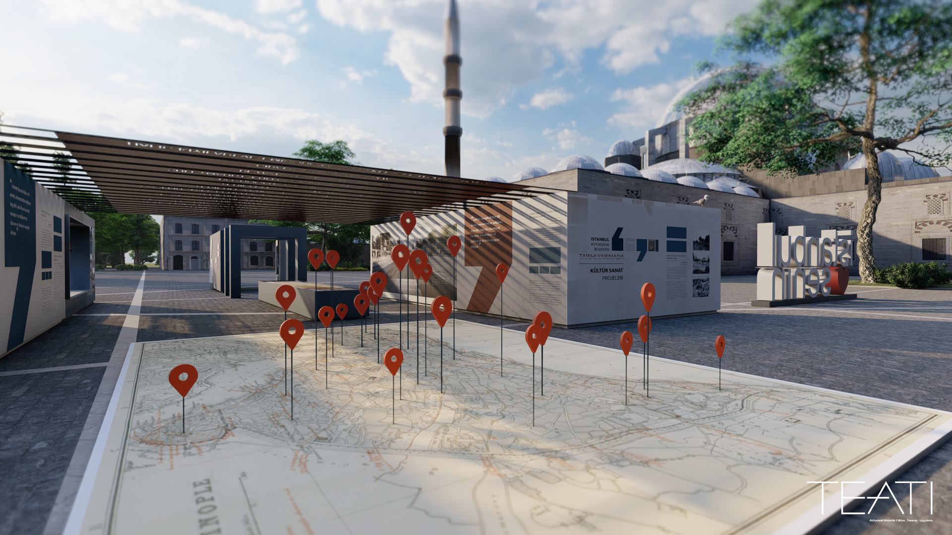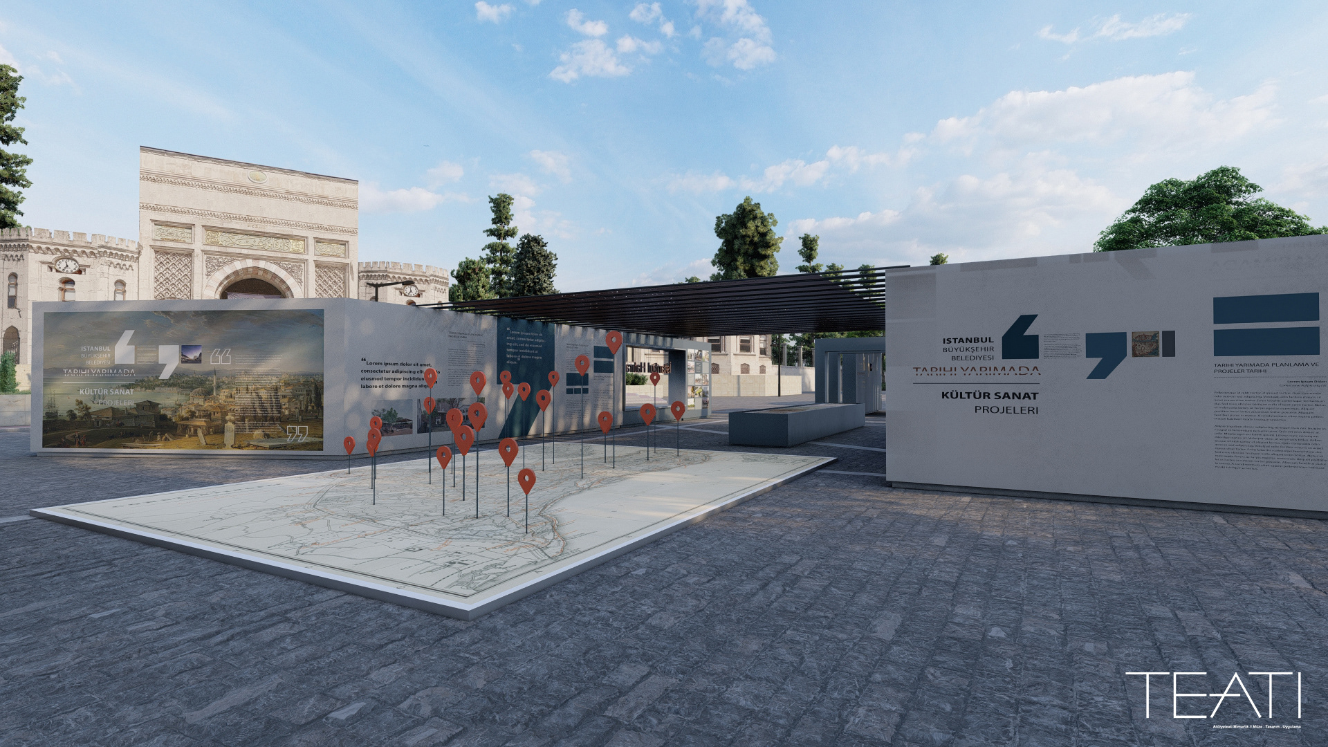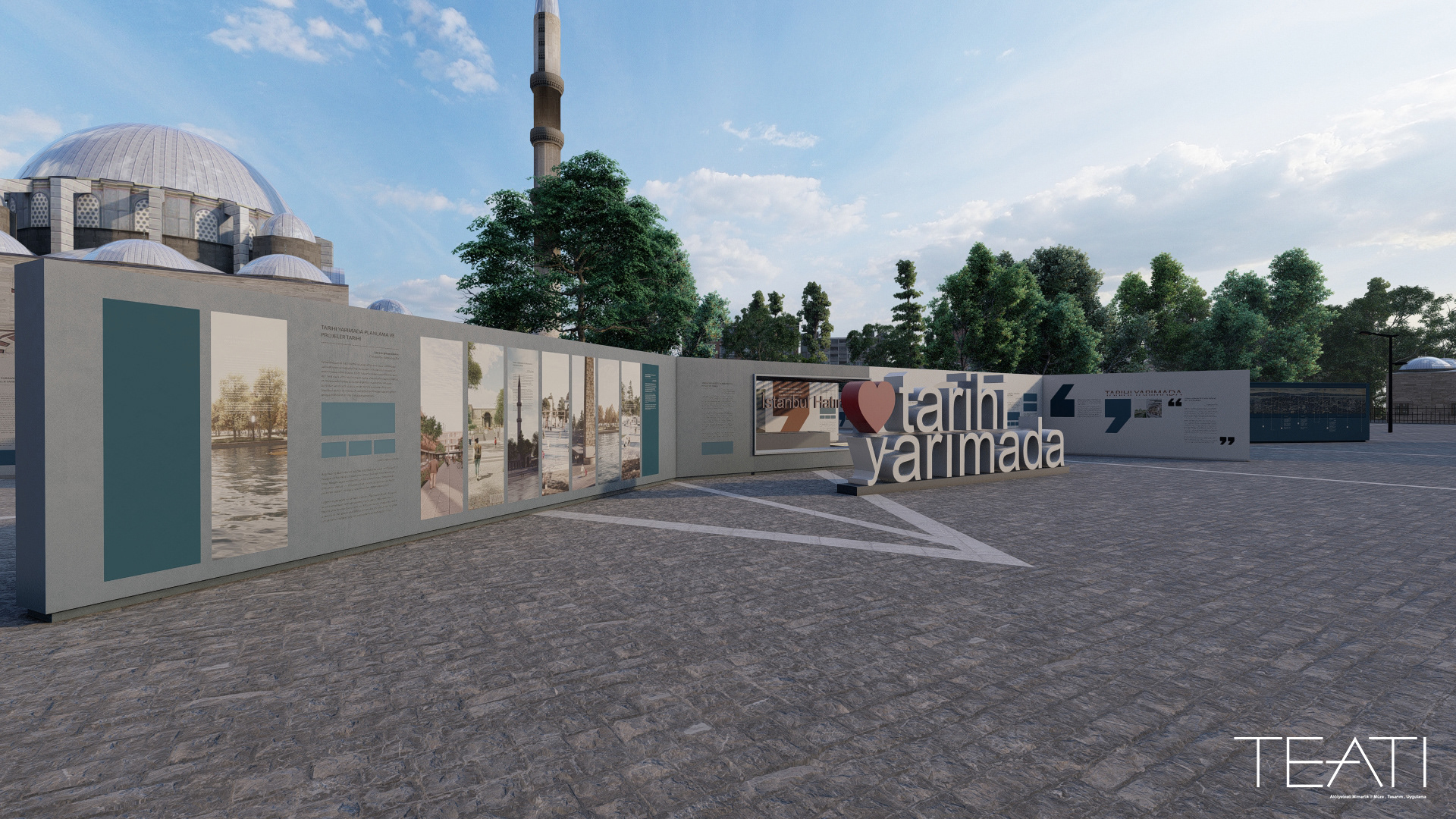 Design management of Open Air- Ephemeral Exhibition consists of Curatorial Design, Exhibition Design, Supervision, Construction & Consultancy. The total Site Area is 18.000 m² and the Exhibition Area is 1.250 m². Beyazid square is the cultural hub that witness yesterday, today, tomorrow of the city, İstanbul. designed an open-air exhibition narrating the stories of Historical Peninsula Projects at the Square. It was a case study of displaying data while trying to catch the attention of the urban crowd at the heart of the historical city center. The site has historical importance and supervised by the conservation board of the city. In order to prevent any damage to the pavements of the square, all the details were fabricated at the workshop and then reassembled on site.